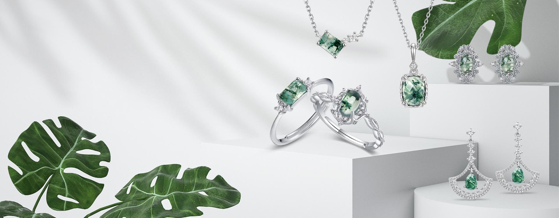 Natural Green Moss Agate Stacking Ring 925 Sterling Silver Geometric Jewelry Kite-Cut
