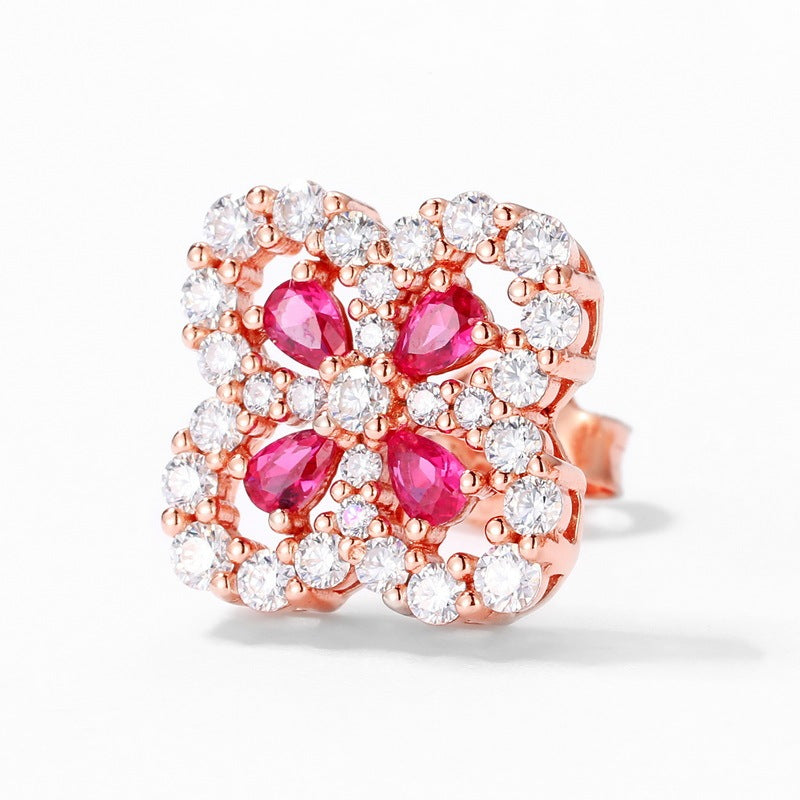 925 Silver Four-leaf Flower Petal Labgrown Ruby Earrings Studs Gift For Her