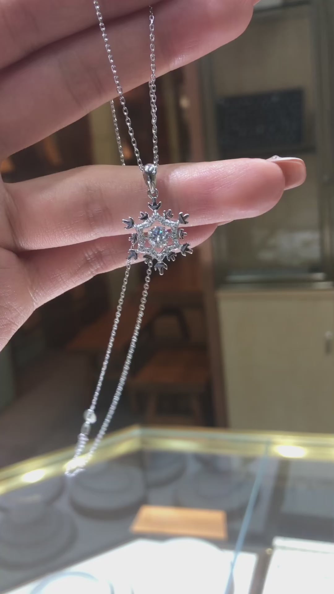 D Color 0.5ct Moissanite Icy Snow Queen Necklace, 925 Silver Rhodium Plated