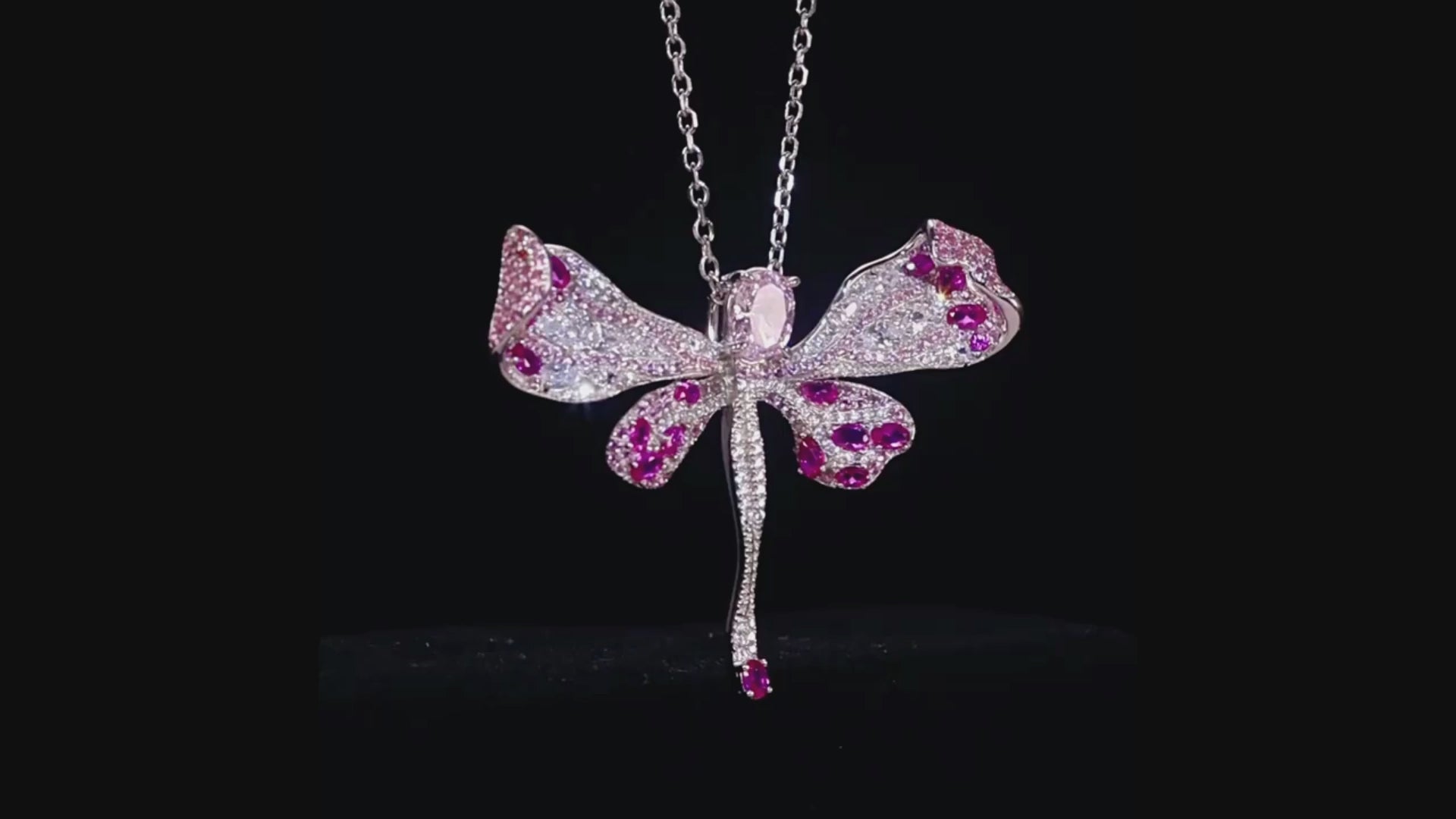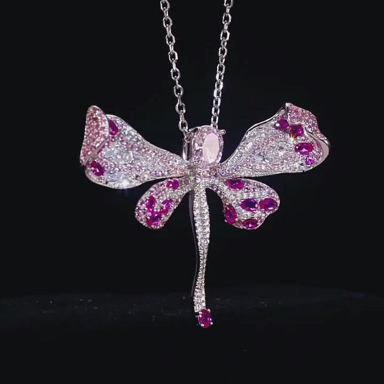 Dragonfly Light Pink High Carbon Diamond Pendant - 925 Sterling Silver Necklace for Women