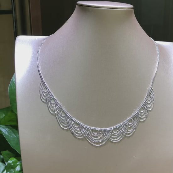Embrace the intricate artistry of Italian craftsmanship with our Lace Weave Wave Necklace. Meticulously crafted from 5.12g of solid 925 Sterling Silver and plated with luxurious 18K Gold in both classic white and antique gold finishes, this piece showcases an exquisite lace weaving technique that creates a delicate, textured wave pattern.