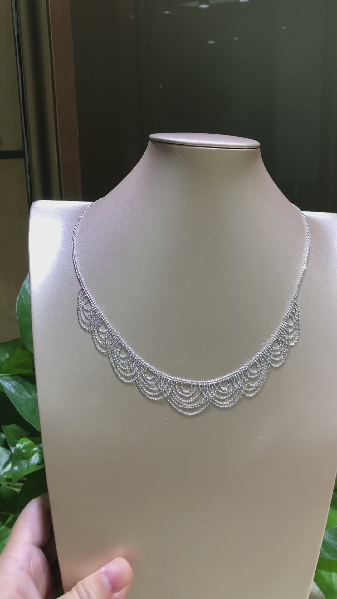 The precision engineering is evident in every detail, from the intricate woven links that mimic vintage lace to the fluid, undulating form that drapes elegantly around the neckline. Each piece bears the S925 stamp, guaranteeing its authentic silver purity and premium quality.