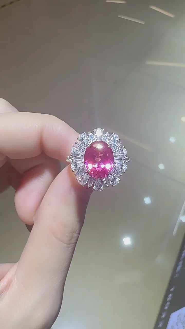 Floral Halo Design: The main stone is nestled in an intricately crafted floral setting, surrounded by a shimmering halo of high-quality 3A cubic zirconia that enhances its sparkle and presence.