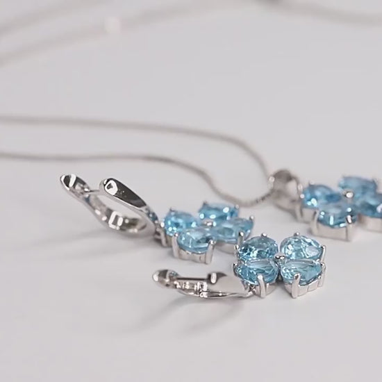 Natural Amethyst Topaz Clover Drop Hoop Earrings 925 Silver Wedding Anniversary Birthday Gift for Her