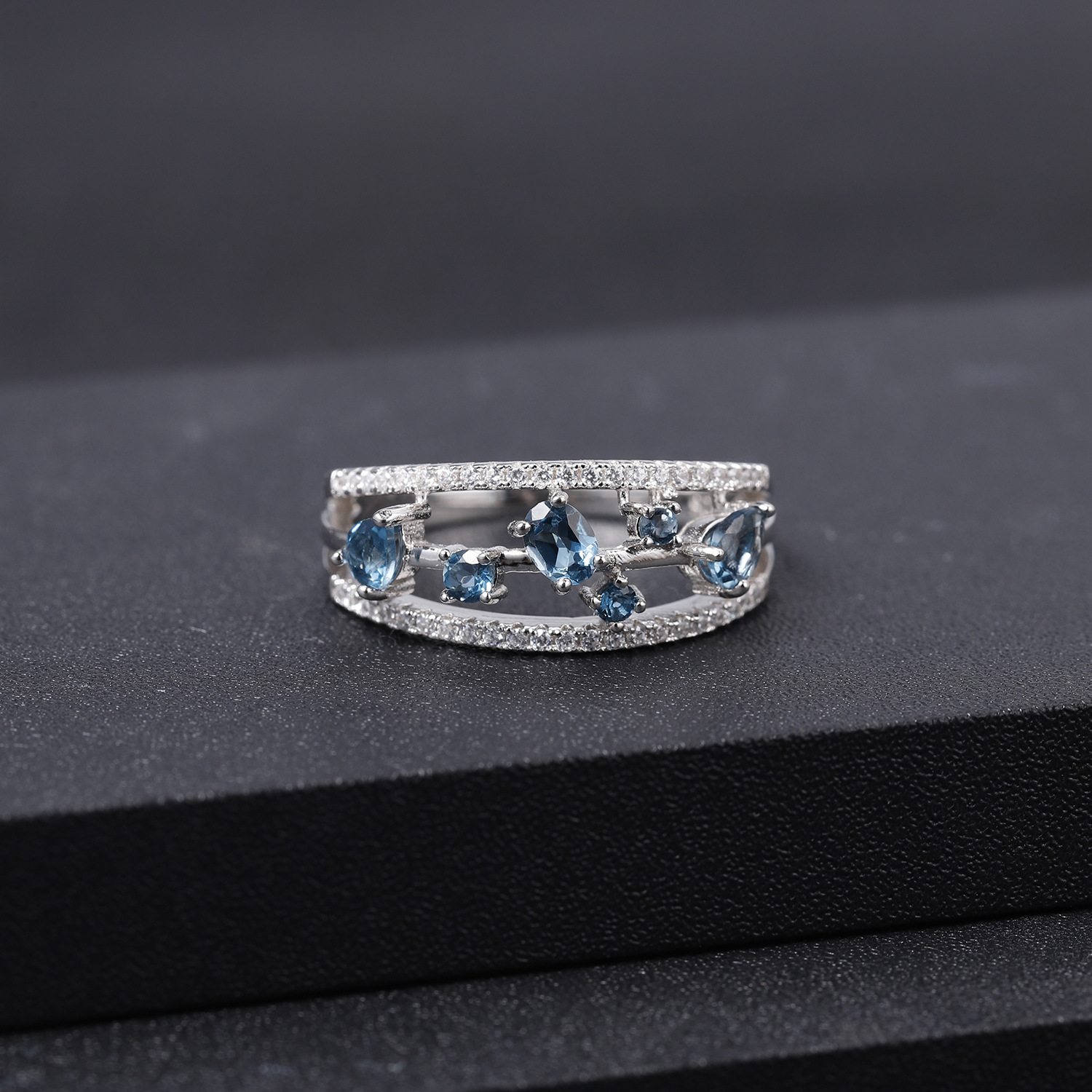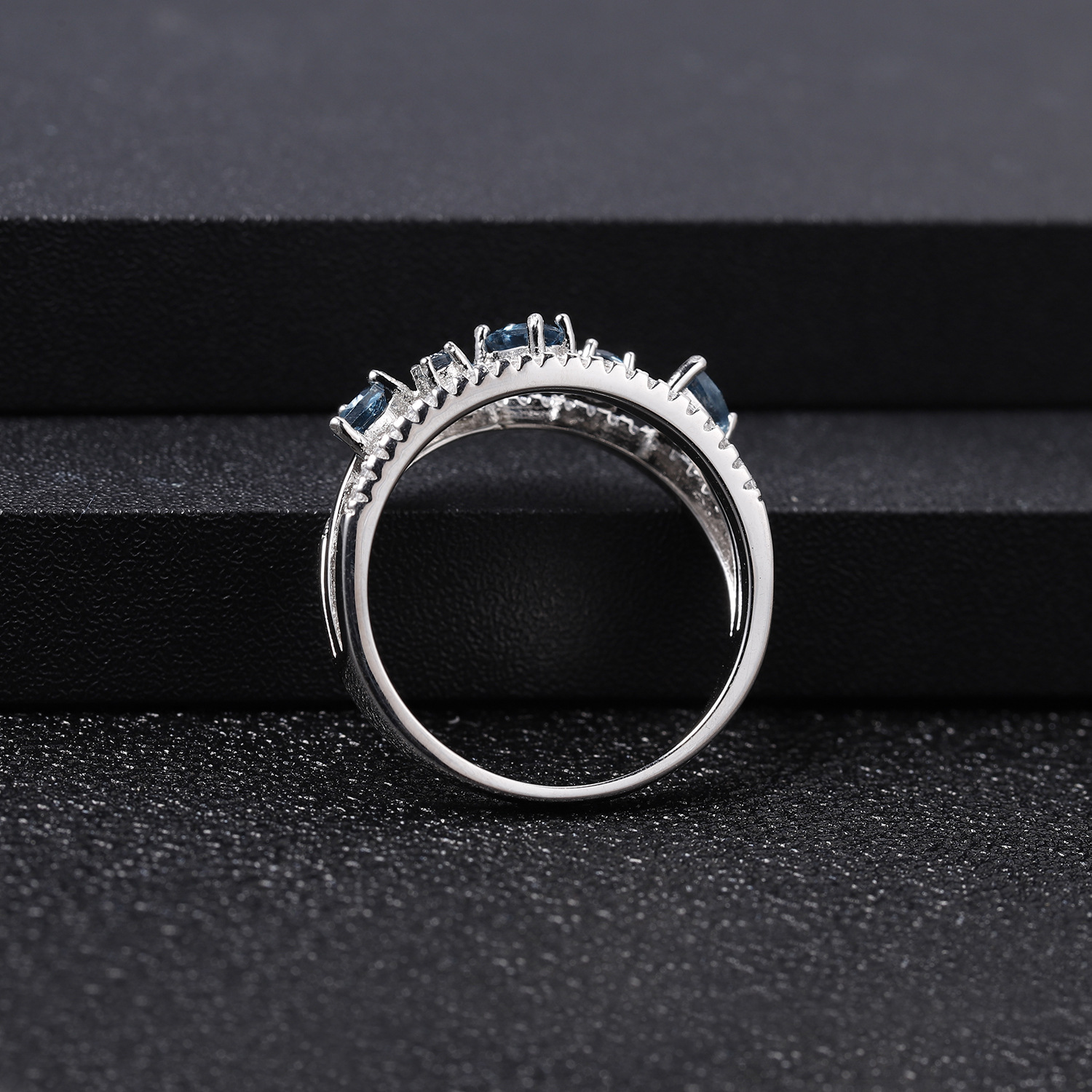 Natural London Blue Topaz Ring 925 Silver Wedding Ring Gift for Her
