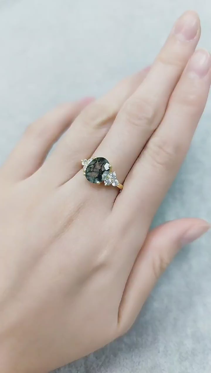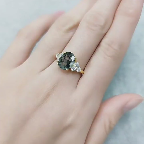 Oval Moss Agate Engagement Ring Vintage-Inspired Solitaire Promise Ring Anniversary Gift