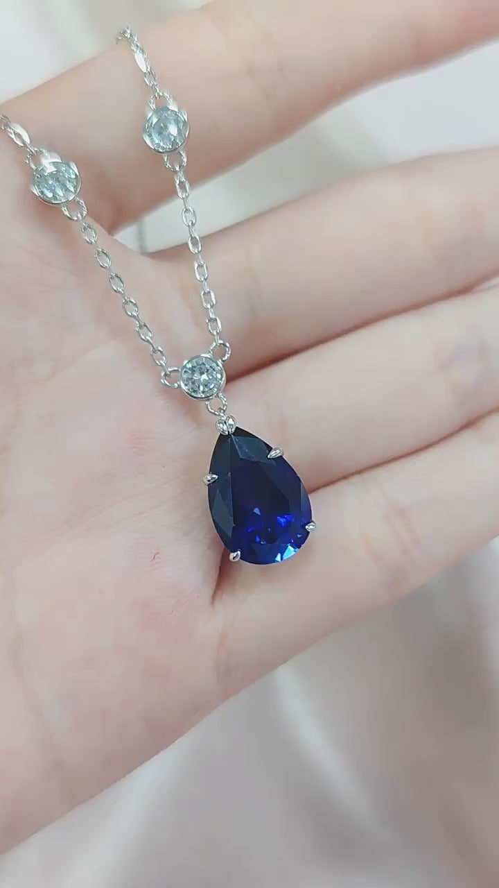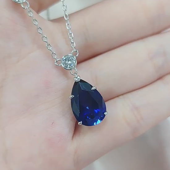 Royal Blue Lab Sapphire Pendant - 6.9ct Pear Shape in 925 Sterling Silver Minimalist Necklace