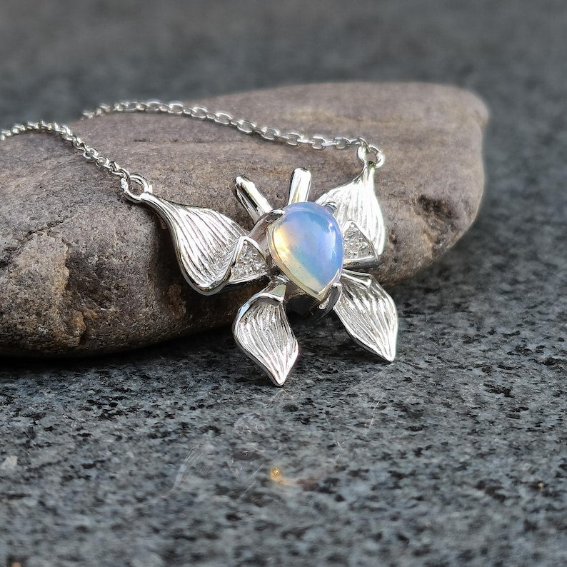 Silver Butterfly Opal Necklace, Delicate Sterling Silver Butterfly Opal Pendant, Natural Opal Gemstone Birthstone Necklace, Nature Jewelry