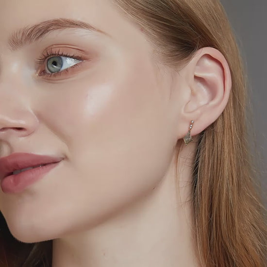 Exquisite Gemstone: Featuring a striking 6x9mm natural Moss Agate center stone in a distinctive kite cut. Each stone showcases unique, organic inclusions reminiscent of miniature landscapes, making every pair truly one-of-a-kind.
